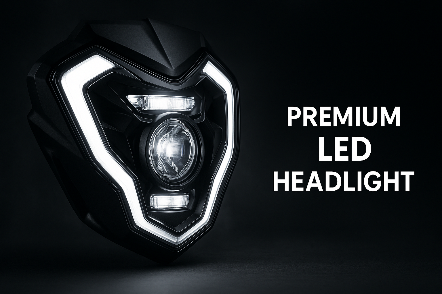 A next-gen LED motorcycle headlight designed for Indian roads, blending aesthetic style with cutting-edge performance.
